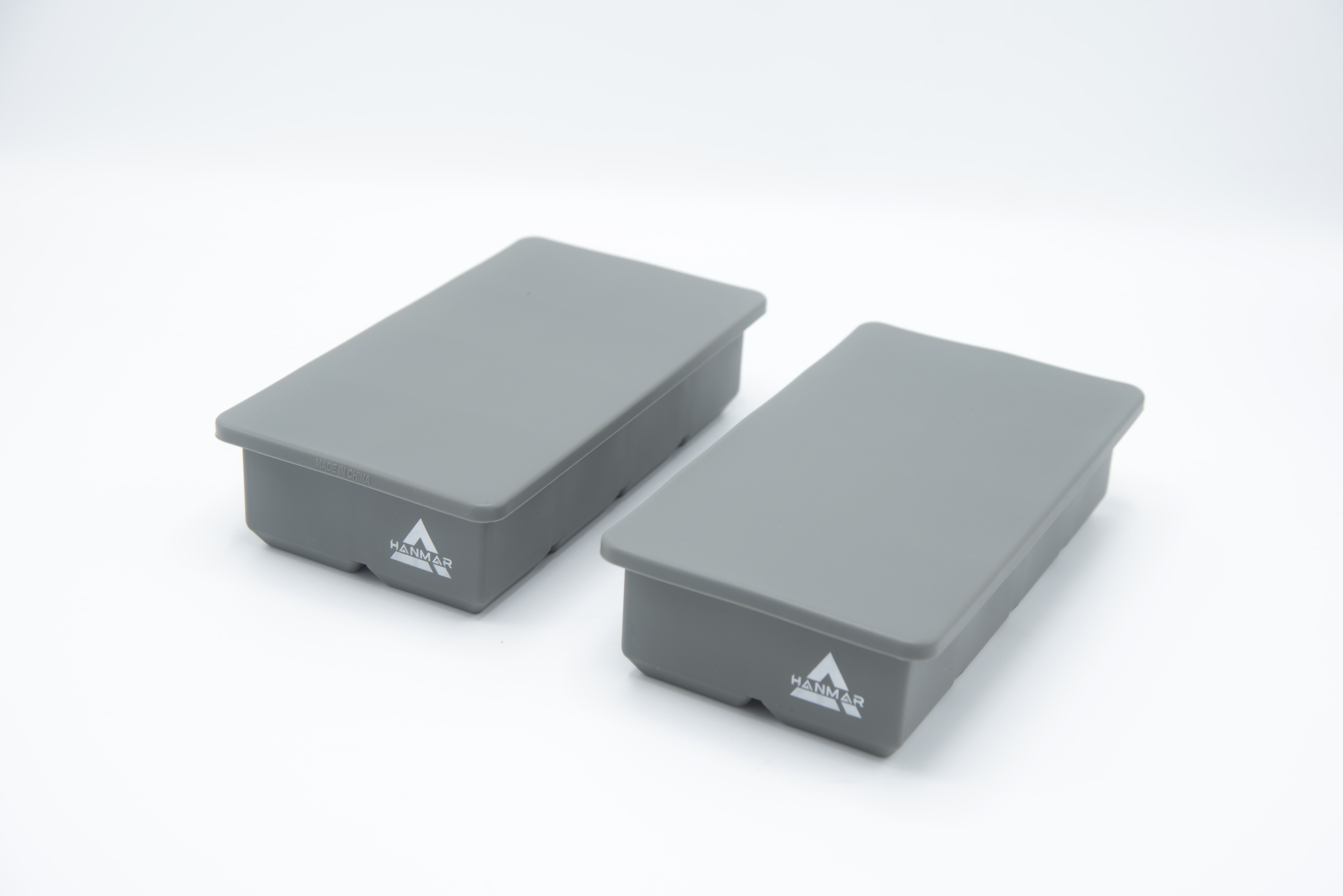 Hanmar large ice cube trays, silicone moulds with flexible lids for odourless ice cubes. Large size ice cubes keep drinks cool with slower melting to prevent tainting the taste of the drink. The flexible mould allows a super easy release of individual ice cubes without any mess. Stackable lids to save space in the freezer prevents spillage and stops ice cubes from being tainted by freezer odours. Perfect for fruit-infused ice for summer drinks or party cocktails. BPA free and food-grade silicone makes these ice cube trays safe for your family and great for storing baby food, fruit, herbs and sauces etc. Each tray makes 8 giant 2-inch square ice cubes